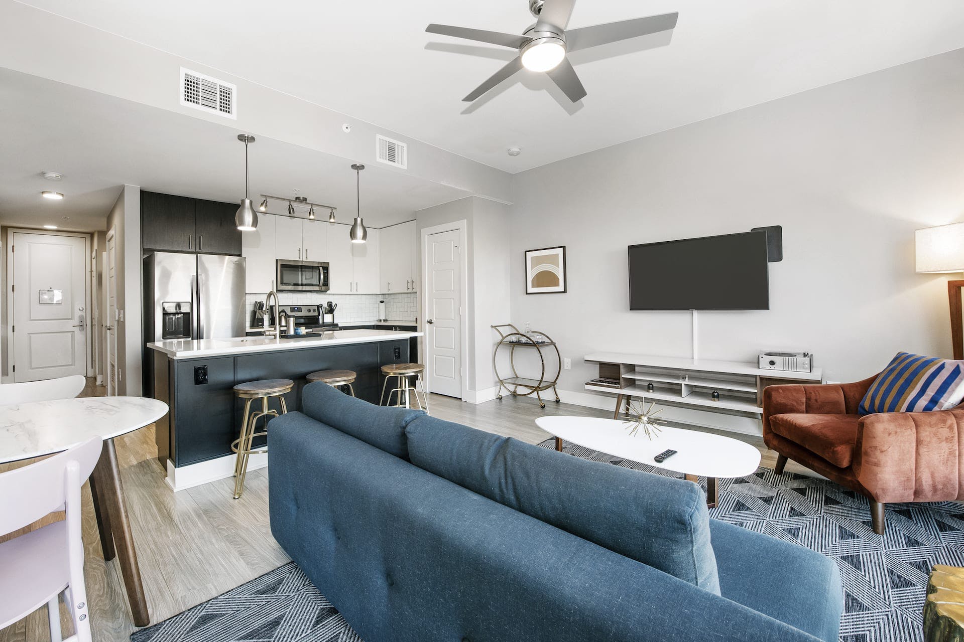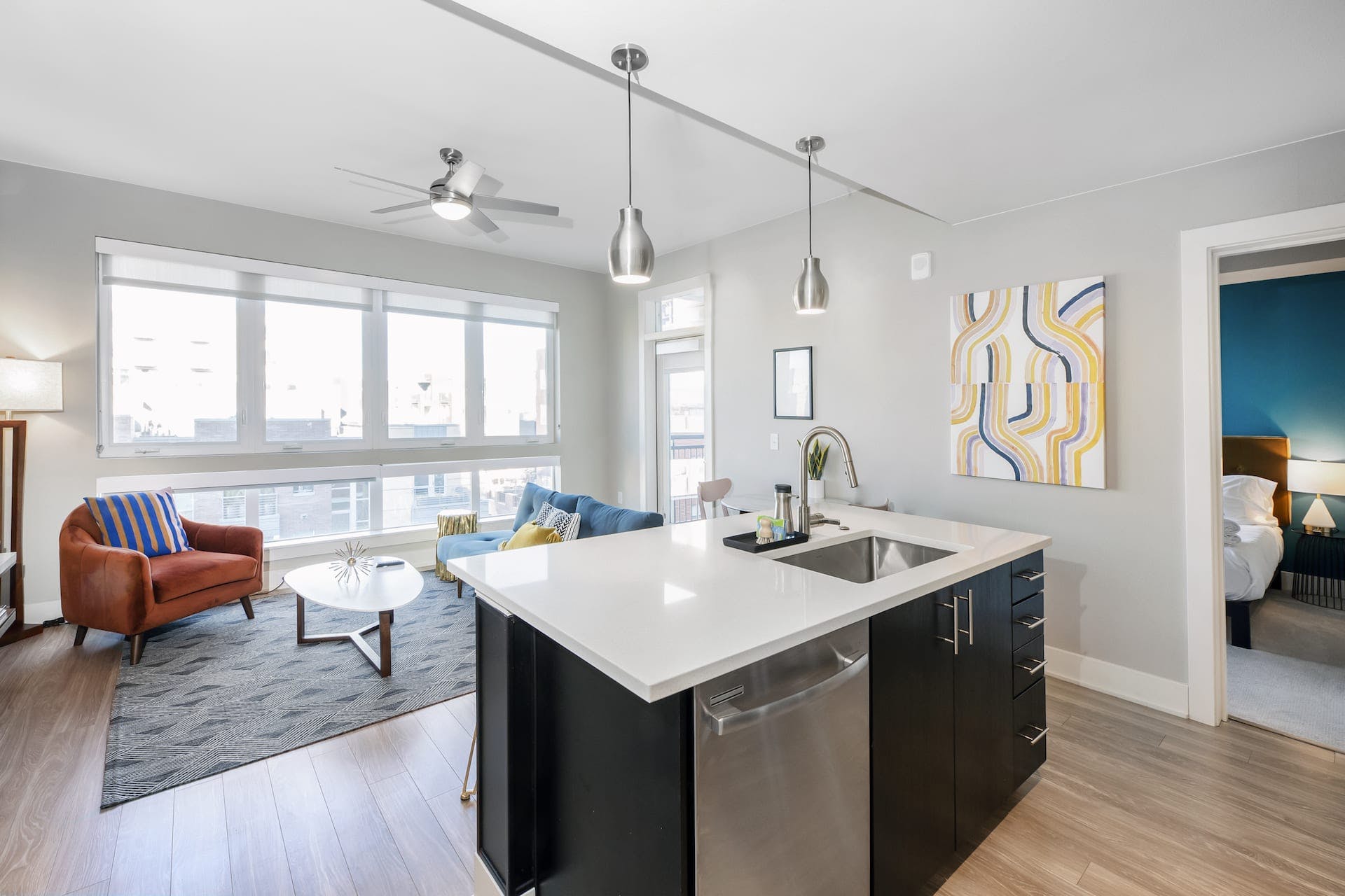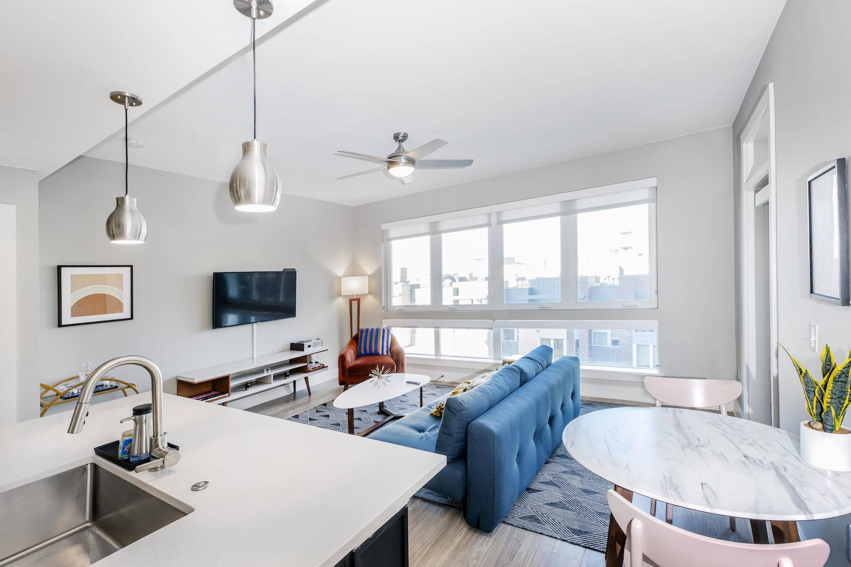 Across the street from Commons Park, this stylish apartment is just a short walk from the heart of LoDo, Denver’s oldest neighbourhood. Perfectly set up for long stays or short city breaks, you’ll find everything you need to guarantee a relaxing stay in Colorado’s capital city. The living space is styled with mid-century inspired furnishings, while pops of colour add a playful touch to each room. A laptop-friendly workspace and super speedy wi-fi make keeping on top of those emails a breeze – curl up on the comfy sofa for a break afterwards, or head to the hammock area to chill out. If you've worked up an appetite in the communal pool or gym, then you’re just footsteps away from the city’s acclaimed restaurants. After you’ve perused LoDo’s trendy bars, head home to the roof terrace for a night cap before sinking into your luxurious super king-size bed.