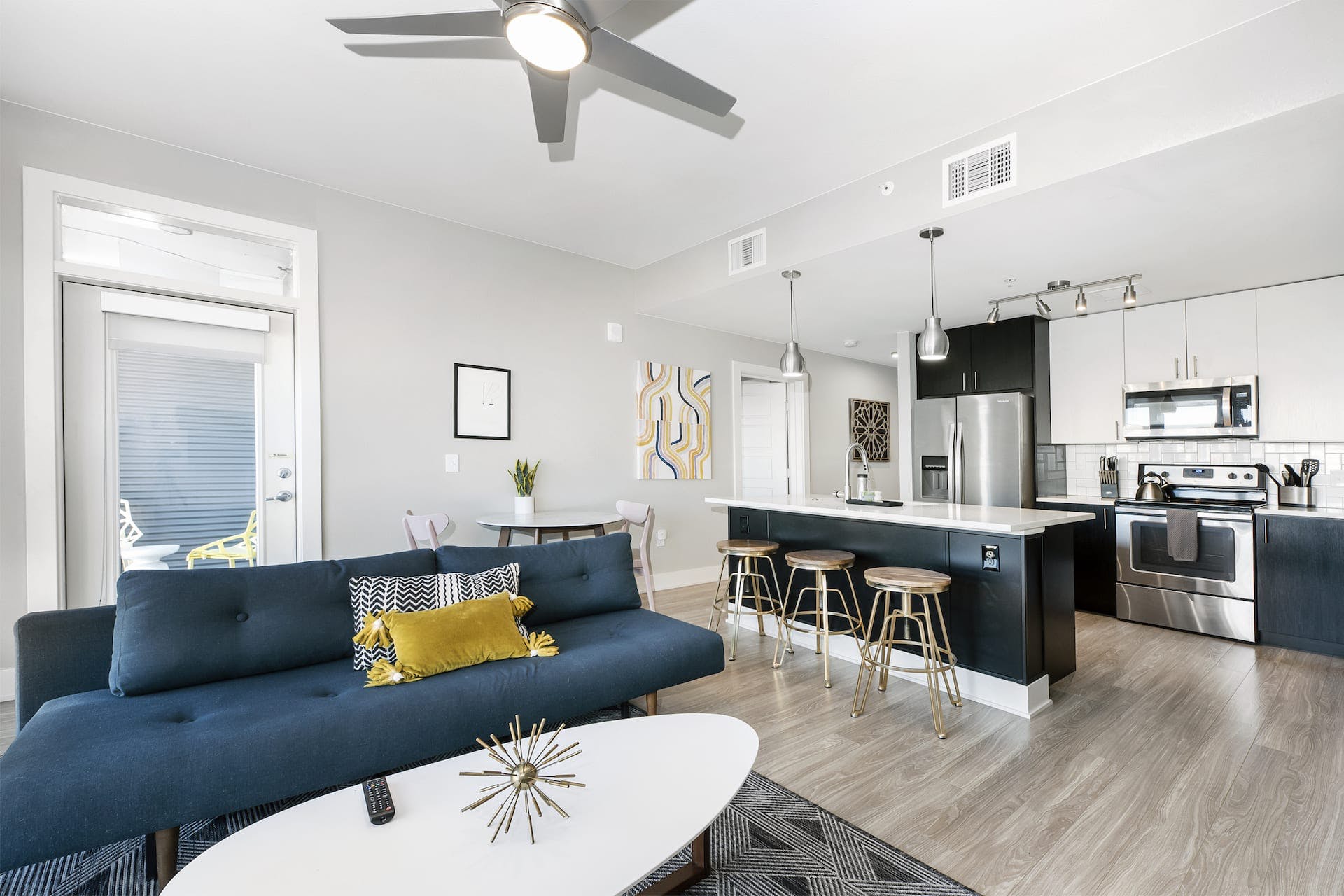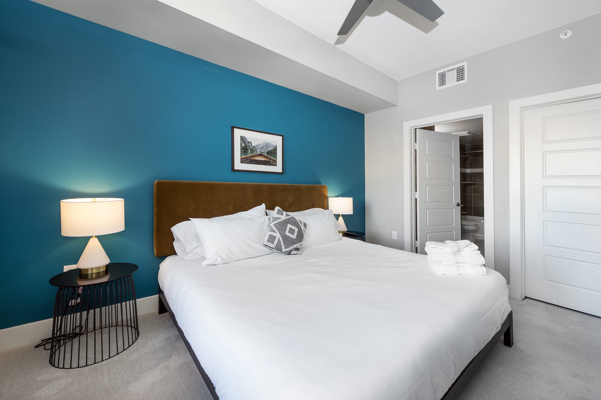 There is plenty to love about this chic apartment, just a few minutes away from South Platte River. A rooftop terrace where you can gather around a fire pit or swing beneath twinkling lights in a hammock with a view of the city skyline? Check. A comfortable living room to spend quiet evenings in front of a box set after a long day exploring the city? Check. A private office for a productive working holiday? Check. A location that means you don't have to catch a cab for dinner or wait for a train to visit an art gallery? Check, check and check. This cosy one-bedroom apartment comes with all these features and more, including things you didn’t even know you wanted – like a pool for summer swims, a fully equipped gyms for early morning workouts, and even an in-house dog grooming parlour.