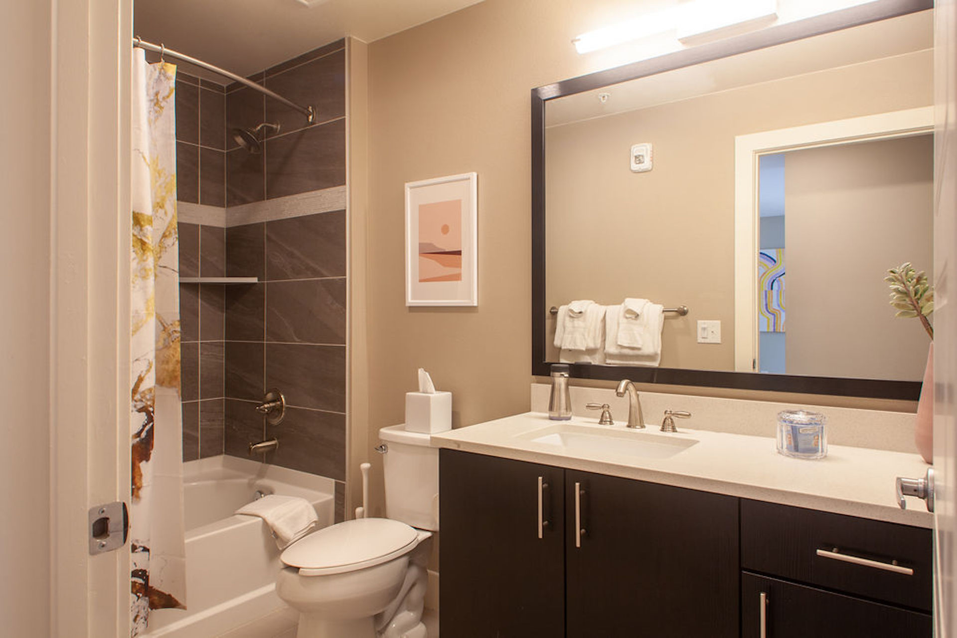Comfortable and stylish, this home-from-home apartment is perfect whether you're staying in Denver for just a few days or visiting on business for a few weeks. In the stylish LoDo neighbourhood, you'll be close to all sorts of attractions, including the Downtown Aquarium, Coors Field, and the Millennium Bridge. Inside, it's a practical space with everything you'll need for an independent stay. There's a well kitted-out kitchen and a small dining table for meals at home, a work space and a bright, open-plan living area with floor-to-ceiling windows. Spend cosy evenings in front of the TV or tucked up, reading in bed – or head out to enjoy the local area. There are dozens of restaurants and bars just steps from your door, and Union Station is a quick, seven-minute walk away.