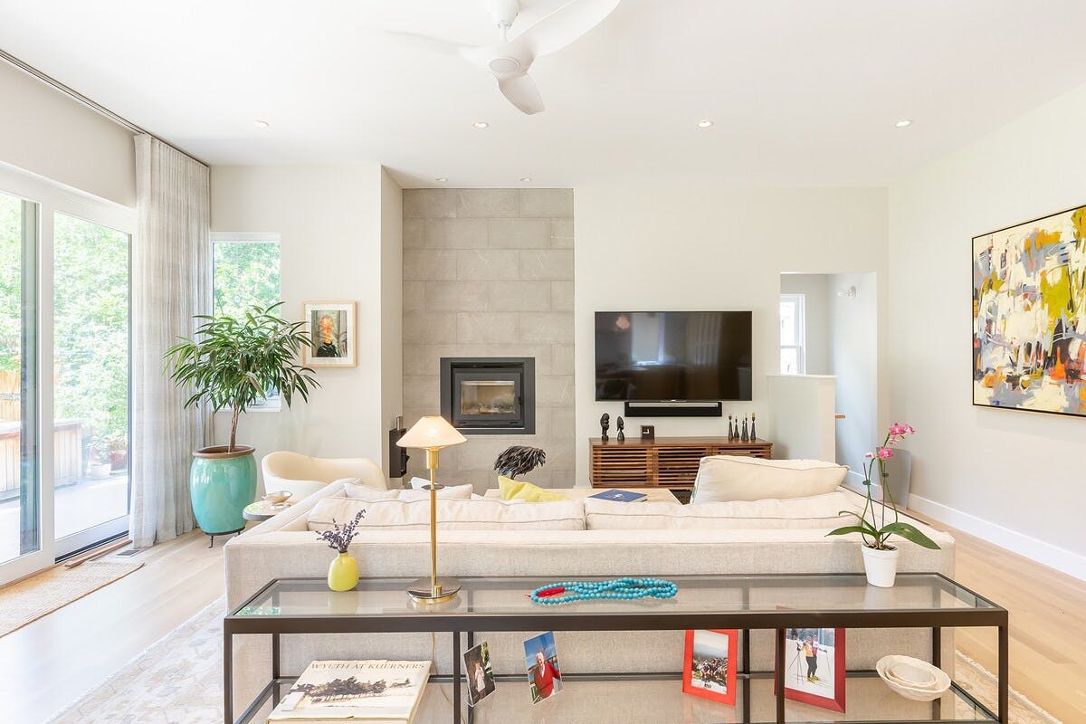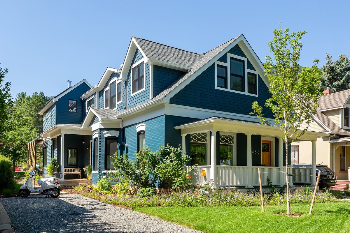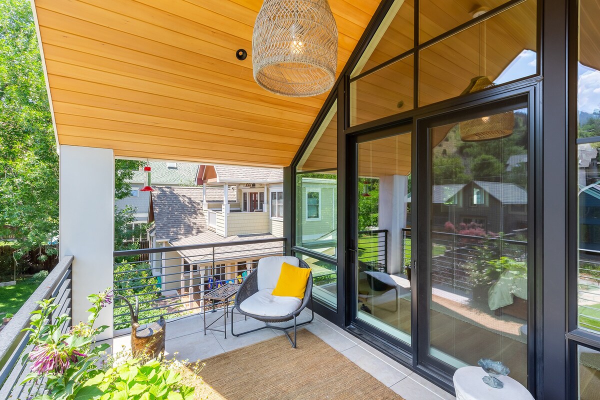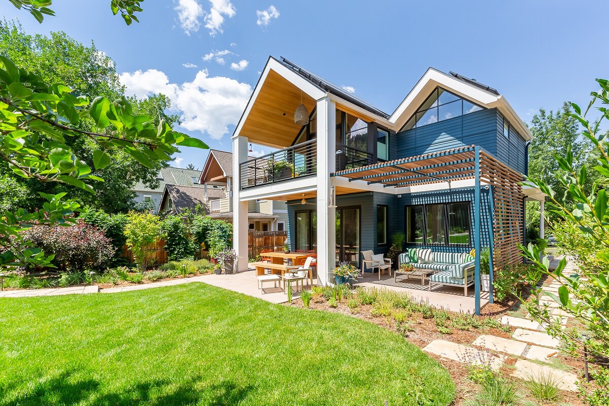 Step out onto the balcony with a morning coffee and take in a view of the Rocky Mountains. This home’s design makes the most of its picturesque location, with enormous windows and a semi-shaded terrace perfect for watching the sun go down over the slopes. We love the pairing of a traditional exterior with a more modern interior – enjoy cooking at the island in the bright light-wood kitchen in the mornings, or socialising around a meal at the dining table under the chandelier. In the summertime, walk to Boulder Creek Path for hiking and biking trails amongst the area’s stunning scenery. Alternatively, wander downtown for excellent bars, restaurants and coffee shops. Come winter, you’ll want to explore the nearby ski resorts and make the most of Colorado's famous powder before cosying up in front of the fire and switching on the smart TV.