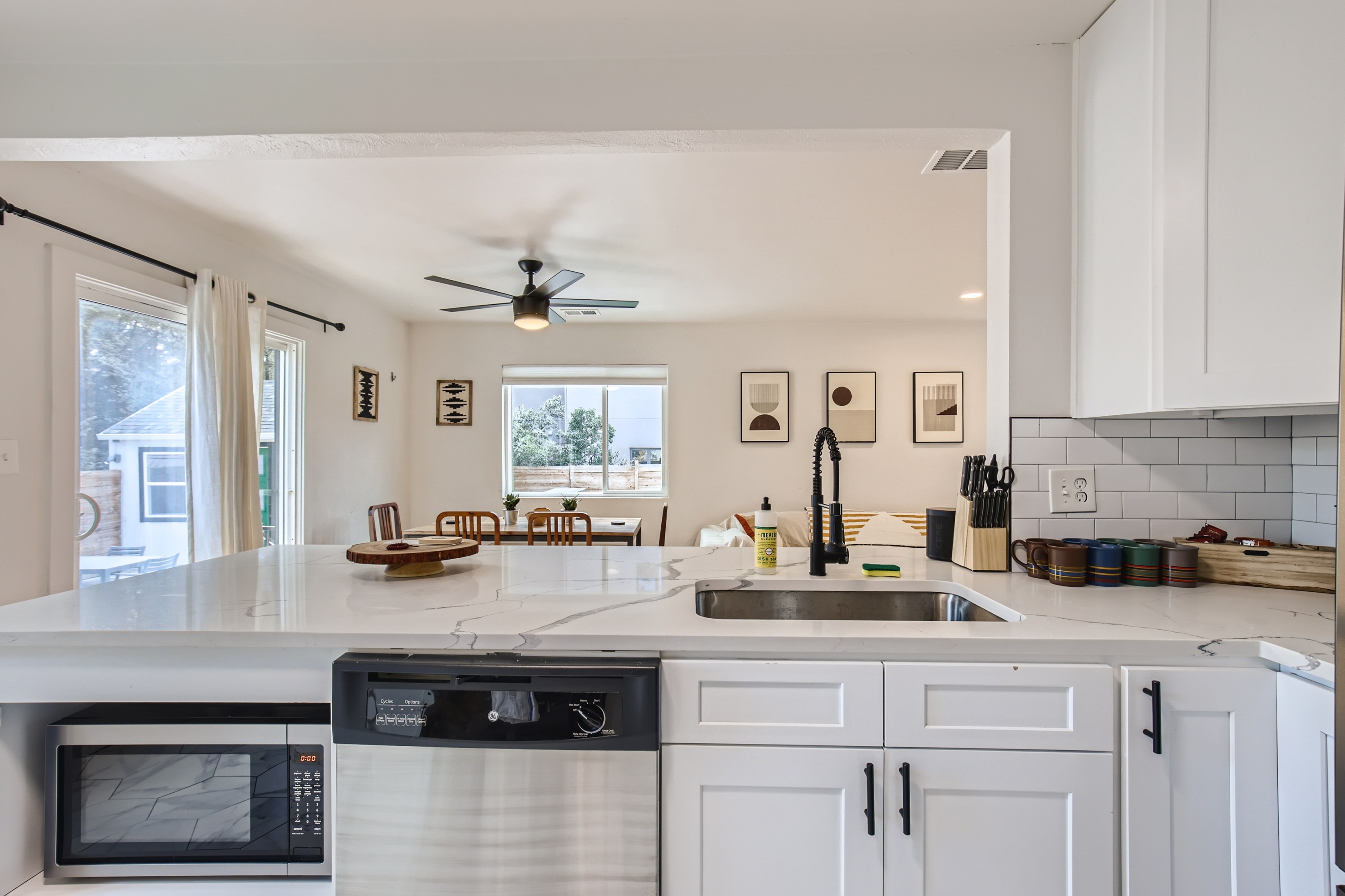 Sitting peacefully on the western edge of Denver, this Wheat Ridge home welcomes you to experience the majestic charm of Colorado. From mountain adventures to Red Rocks concerts and sunset strolls along trendy Tennyson Street (just a five-minute drive away), you’ll find every sense satisfied with the uplifting spirit of this location. And when you’re looking for total relaxation, this home invites you to step inside and enjoy the laid-back charm of the American Southwest. From the warm palette of colours and soft furnishings to the bright, open design, this is the perfect setting for intimate gatherings. And with three living spaces alongside five bedrooms, you’ll find an abundance of space to unwind and share quality time together. Enjoy a quiet morning coffee in the backyard, savour a long soak in the hot tub, play games of badminton and gather everyone together for sunset drinks and barbecue meals. In whatever way you choose to spend your time here, it’s the kind of space that inspires you to settle in and make it your own. From here, it’s just a fifteen-minute drive to Downtown Denver, while Sloan’s Lake is only ten minutes away. And for those in search of an exhilarating adventure, there’s easy access to the I-70 for hiking and skiing in the Rocky Mountains, visiting Golden or treating yourself to an unforgettable Red Rocks concert.