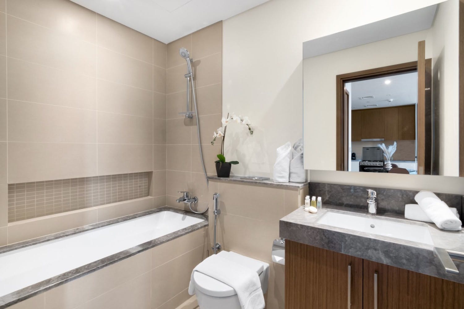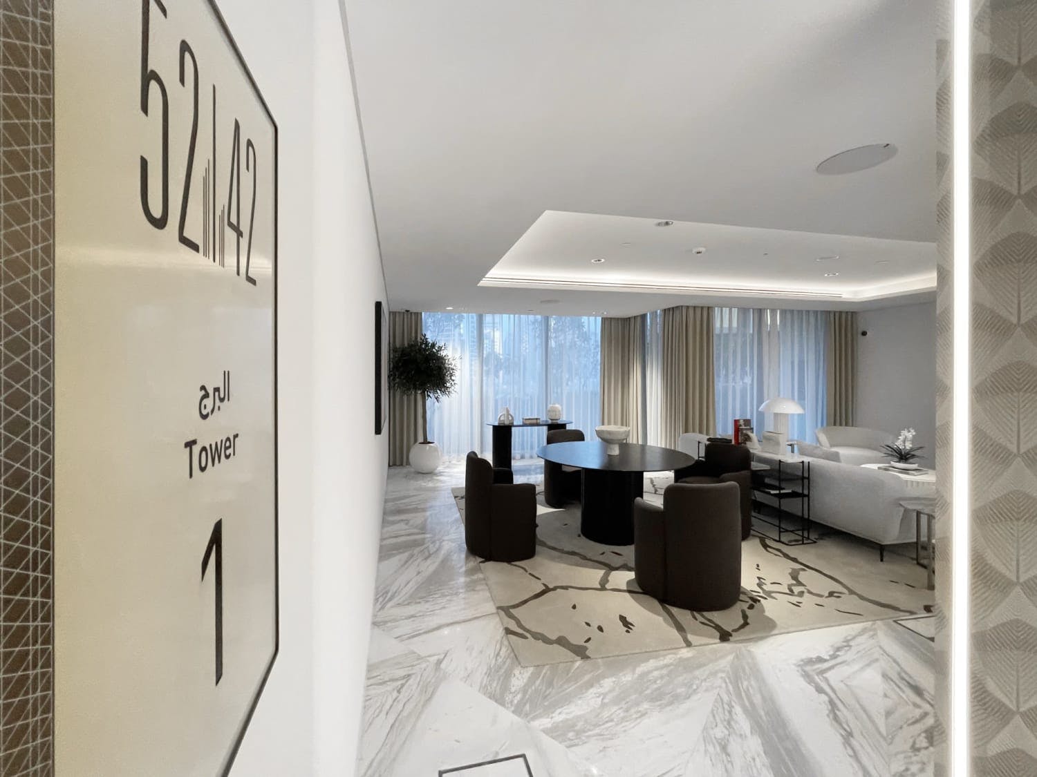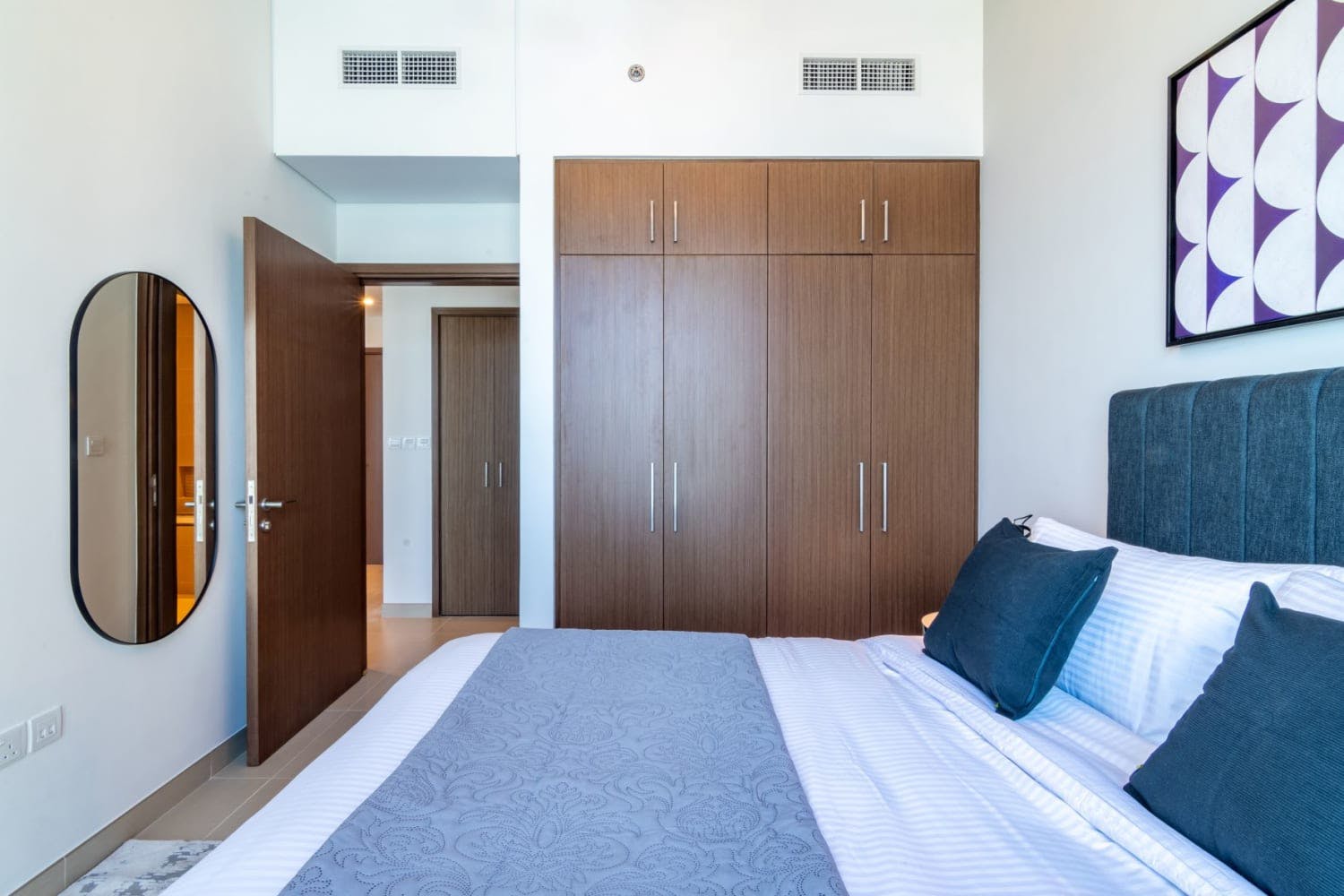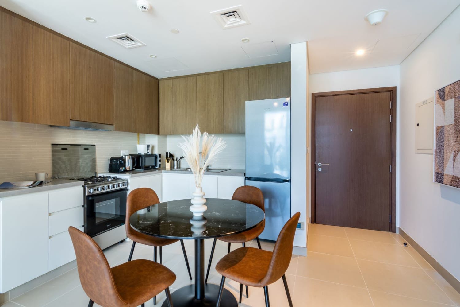 This minimalist yet chic apartment is located above Dubai’s beautiful marina and includes scenic views of the carved waterways and their surrounding epic architecture. The apartment itself features an elegant, open-plan design with unique touches that add a sense of character, such as the mid-century style furniture, plush rugs, and geometric artwork. This is the perfect base for anyone looking to explore all that this city’s astounding built environment has to offer, whether you’re here for the world-class golf, the Michelin rated restaurants, white sand beaches, or dazzling nightlife. Arriving home after a day of exploring Dubai’s luxurious offerings, you’ll find the ample bedroom with king size bed, en-suite, and sweeping views provides all the comfort you need for a restful sleep. Come morning, take your coffee out to the private balcony before heading to the building's shared gym for a workout, or to the pool for a refreshing swim to start your day.